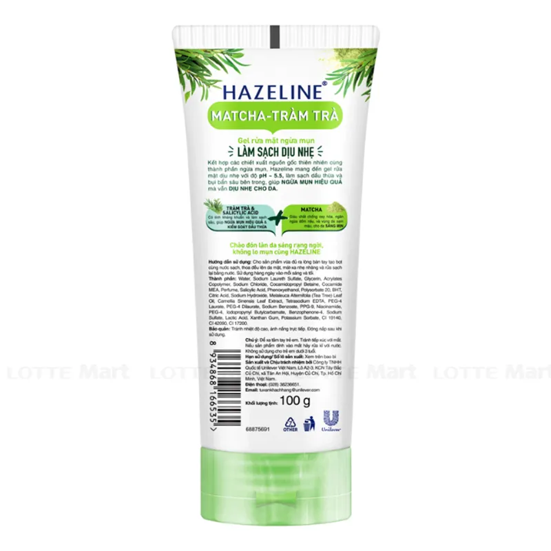 Gel Rửa Mặt Hazeline Ngừa Mụn Dịu Nhẹ Matcha Tràm Trà 100G