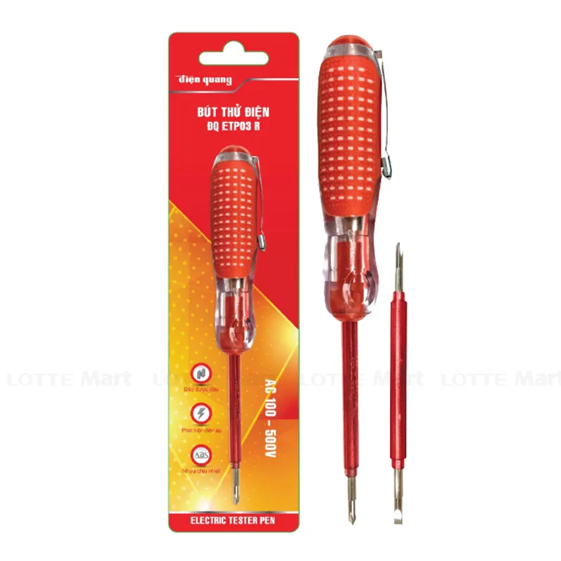 Bút Thử Điện Điện Quang ĐQ ETP03 R 160mm Màu Đỏ (2 Đầu Vít)