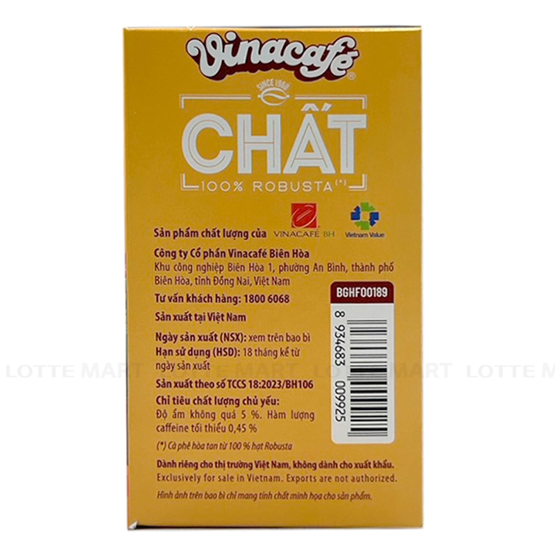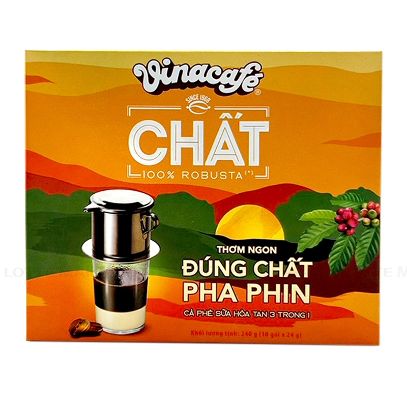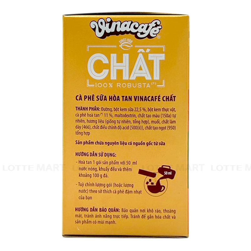 - Sản phẩm không chỉ tiết kiệm thời gian mà còn giúp bạn tận hưởng hương vị cà phê đậm đà, thơm ngon, mang đậm "Chất" cà phê Việt ngay trong từng ngụm. Cà phê sữa đá Vinacafé Chất là lựa chọn lý tưởng cho những ai yêu thích cà phê Việt truyền thống, muốn trải nghiệm sự tiện lợi mà vẫn giữ được trọn vẹn hương vị đặc trưng của cà phê pha phin.