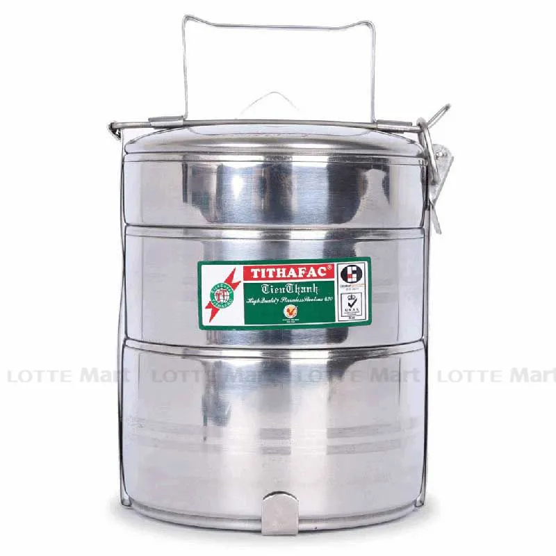 Camen Cao Inox 430 Tithafac 3 Ngăn được làm bằng inox không gỉ 430 chất lượng cao có khả năng giữ nhiệt cao thường được dùng để đựng cơm, cháo, canh, súp và nhiều loại thực phẩm khác.