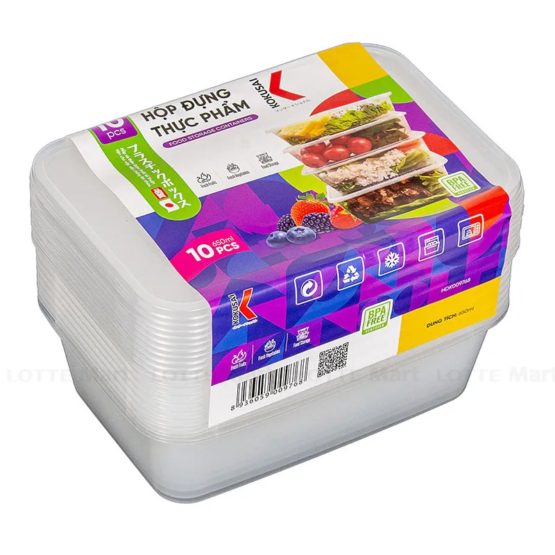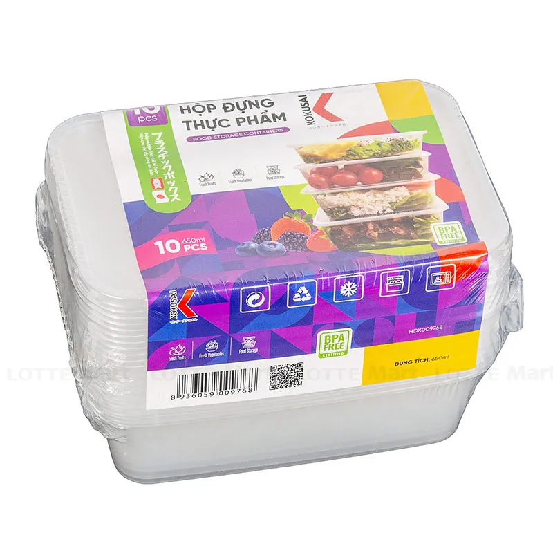 - Hộp Nhựa Đựng Thực Phẩm Kokusai 650ml được sản xuất theo công nghệ Nhật Bản, làm từ nhựa PP cao cấp, bền đẹp, chịu nhiệt tốt, không chứa BPA, có thể dùng được trong lò vi sóng, ngăn đông tủ lạnh.