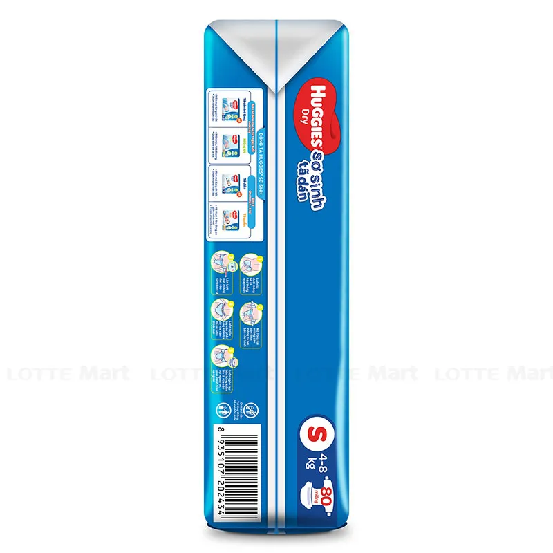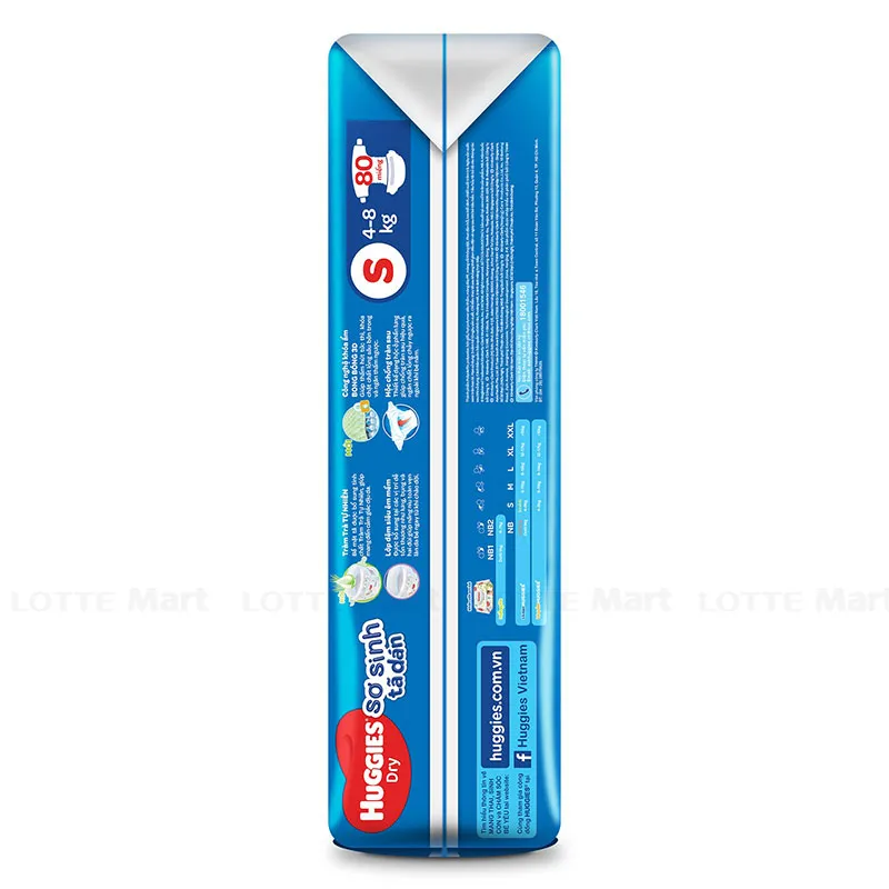 Tã Dán Huggies Dành Cho Trẻ Sơ Sinh S80 Size S Gói 80 Miếng là dòng bỉm dán dành cho các bé sơ sinh với size S phù hợp cho với bé từ 4 - 8kg. Những đặc điểm ưu việt chỉ có ở dòng tã huggies mới như: bọc kén con tằm ngăn hằn đỏ ở mọi vị trí tiếp xúc, 1000 phễu thấm hút giúp thấm nhanh thần tốc và khóa chất lỏng, mặt đáy thoáng khí 100%,... mang đến cho bé yêu nhà bạn những trải nghiệm thật thích thú và thoải mái khi vận động.