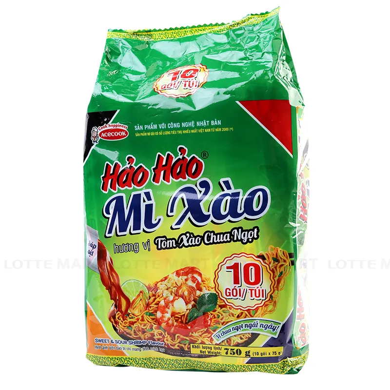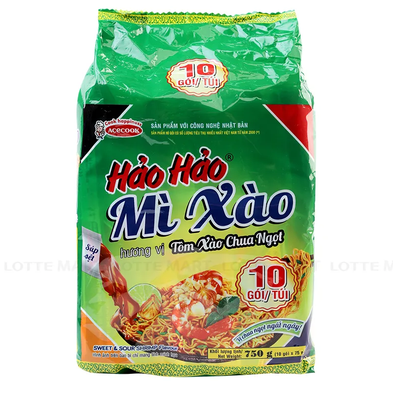- Mì Hảo Hảo Tôm Xào Chua Ngọt với sợi mì tròn dai, hòa quyện vào gia vị thơm ngon cho sợi mì trơn bóng thấm vị, hấp dẫn như món mì xào ngoài hàng quán khiến bạn không thể dừng đũa.