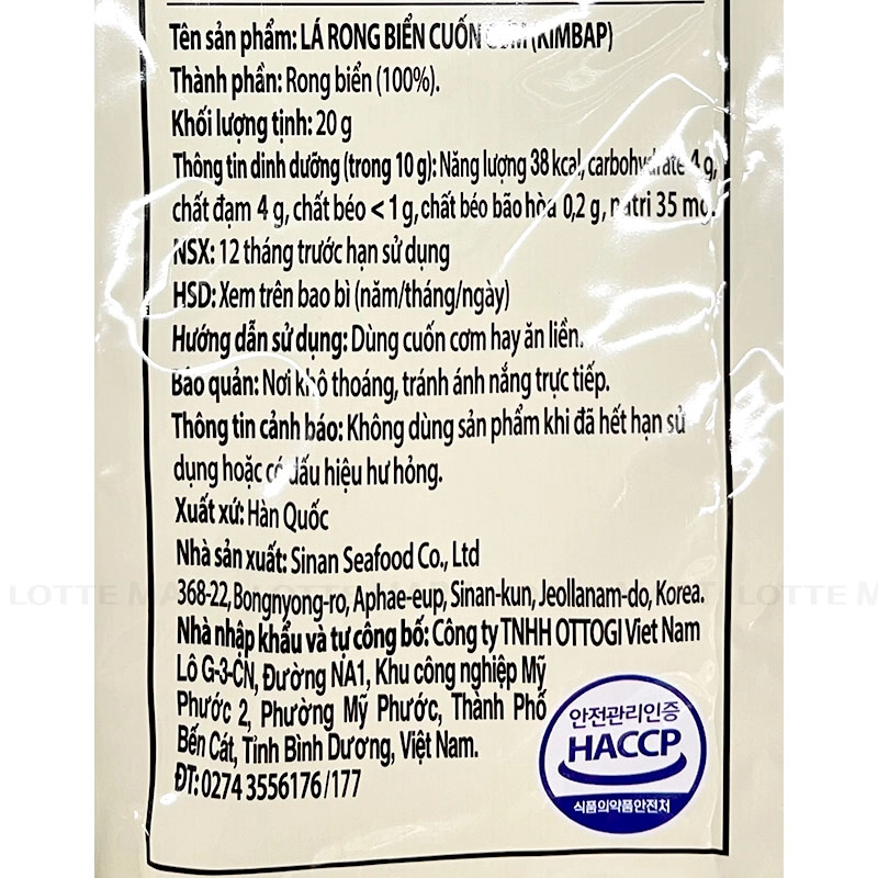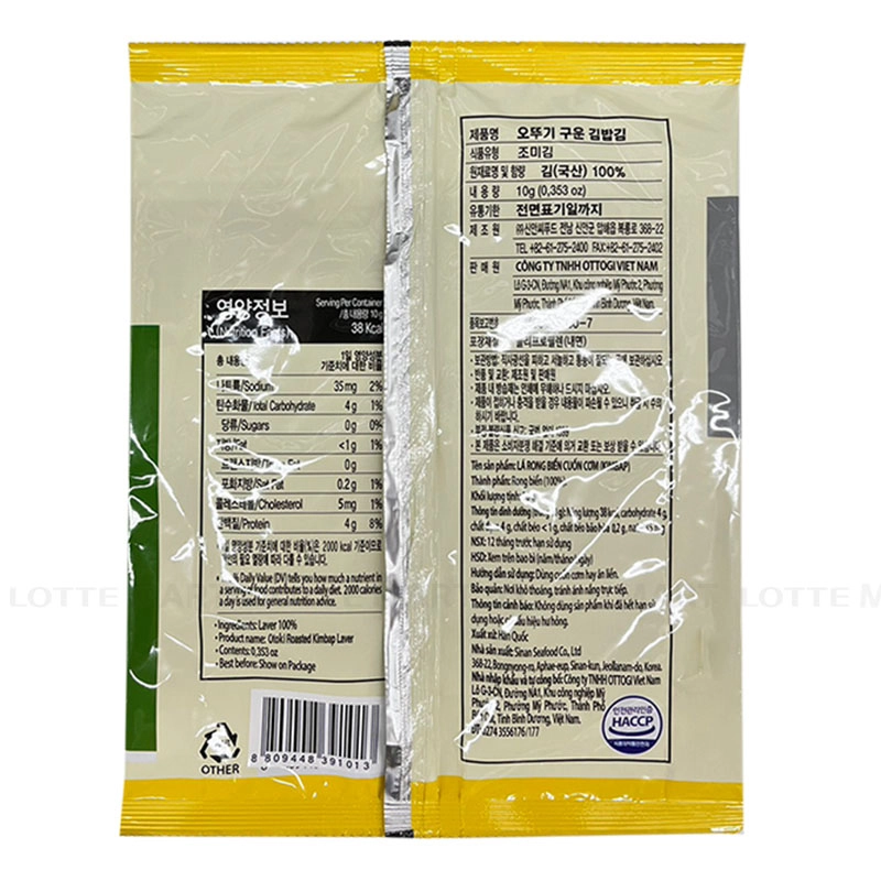 - Rong Biển Ottogi Cuộn Cơm được chế biến từ 100% rong biển, có hương vị thơm ngon và màu sắc tự nhiên, lý tưởng để làm cơm cuộn hoặc dùng kèm với cơm trắng.