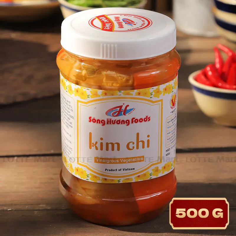 - Kim Chi Sông Hương được sản xuất theo công thức truyền thống, lên men tự nhiên mang đến hương vị đặc trưng thơm ngon của món ăn.