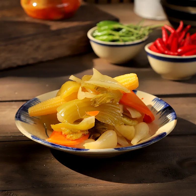 - Thành phần:Cải thìa, nước, đường, cà rốt, cùi non, củ mài, củ sen, tỏi, muối i-ốt,..