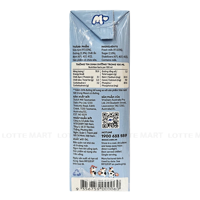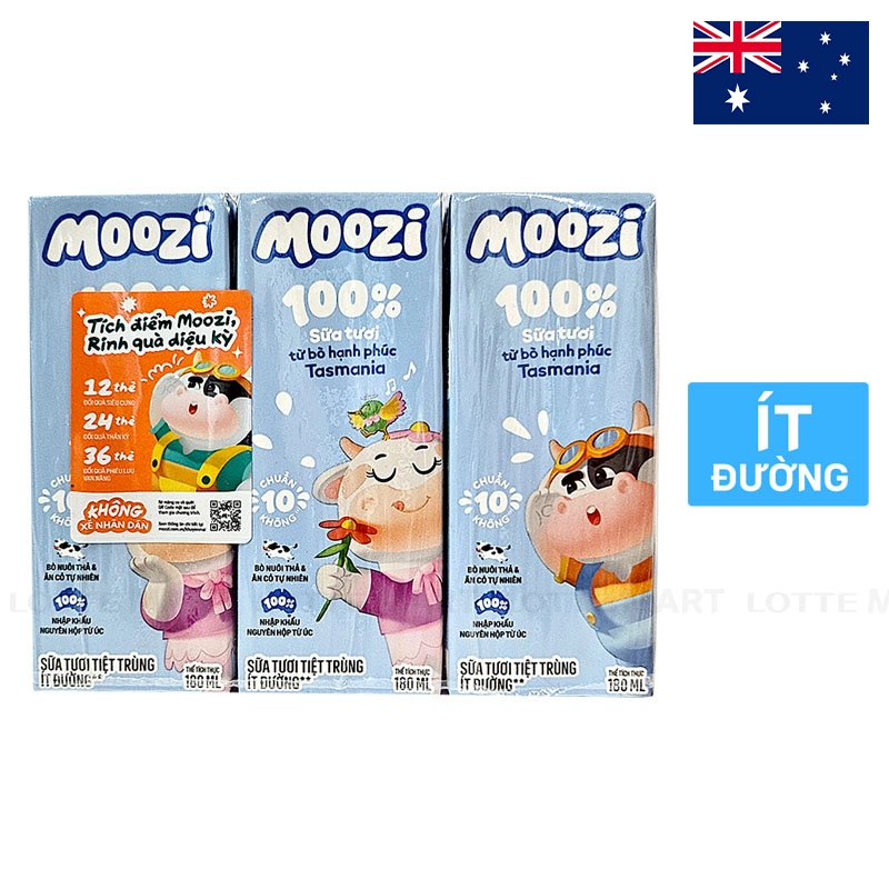 - Sữa Tươi Tiệt Trùng Moozi Ít Đường nhập khẩu từ Úc, mang đến nguồn dinh dưỡng tinh khiết.