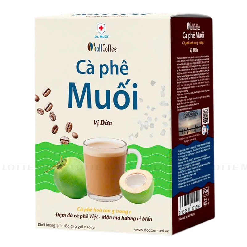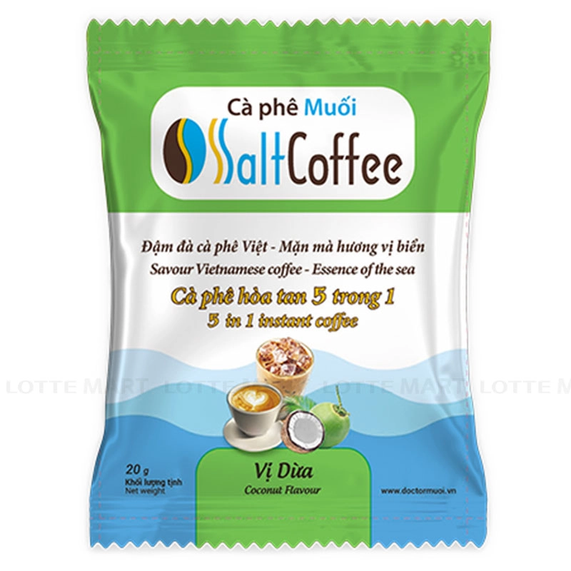 - Cà Phê Muối Vị Dừa SaltCoffee là một sự kết hợp độc đáo giữa cà phê Việt, muối biển và dừa, tạo nên một thức uống mới mẻ và đầy sáng tạo. Được chiết xuất từ những hạt cà phê Việt Nam chất lượng, kết hợp với đường, bột kem và một chút muối biển, sản phẩm mang đến hương vị cà phê đậm đà, kết hợp với vị mặn mà nhẹ nhàng của muối và vị thơm béo đặc trưng của dừa.