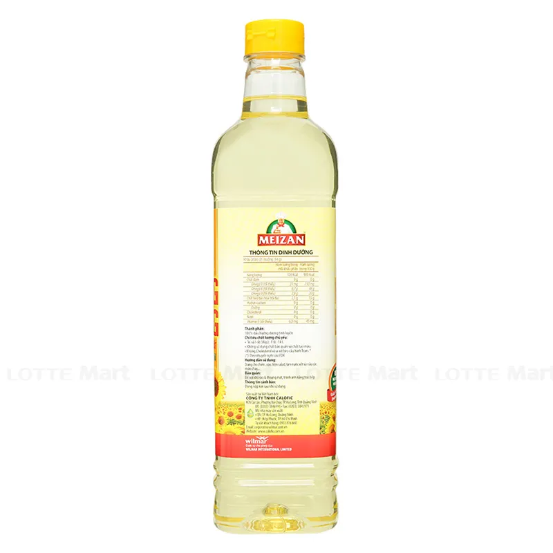 Ngoài ra, trong 100g dầu hướng dương Meizan trung bình có chứa khoảng 900 calo.