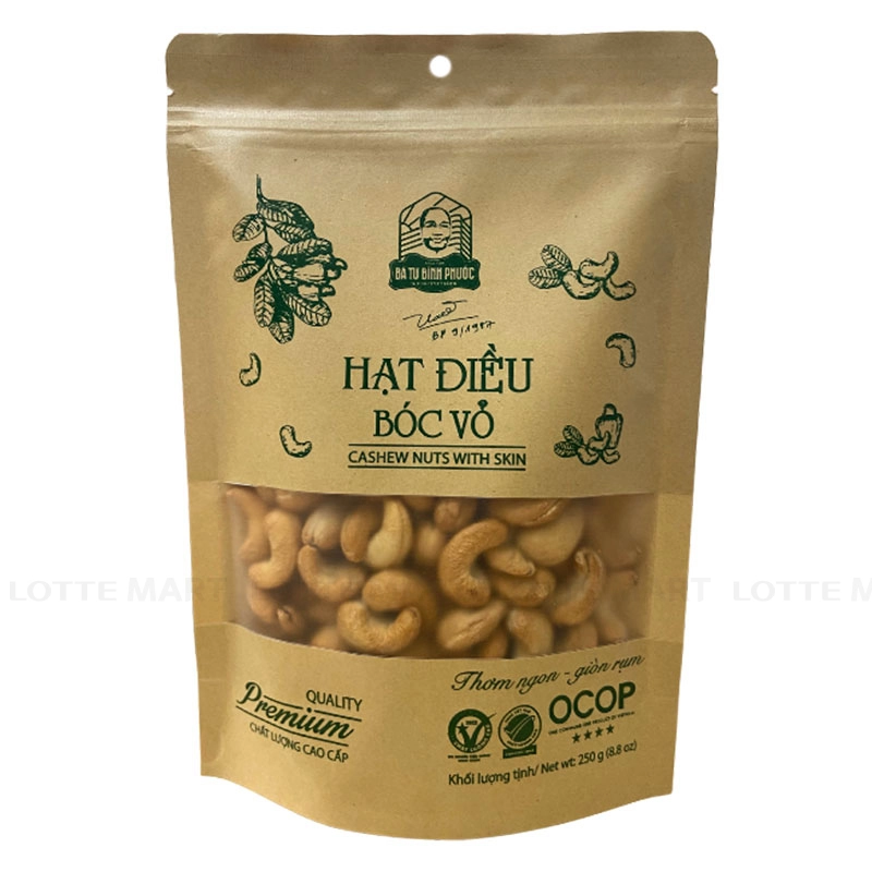 - Hạt Điều Bà Tư Bóc Vỏ được chế biến bằng kỹ thuật rang thủ công truyền thống “Hạt điều tươi rang củi”. Hạt điều được lựa chọn kỹ lưỡng từ nông trang Bà Tư và các vườn của đồng bào S’tieng, Khơme, mang đến hương vị thơm ngon, đậm đà.