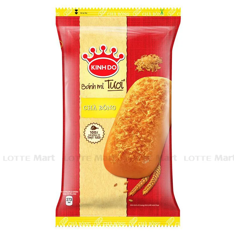 - Bánh Mì Tươi Kinh Đô Chà Bông là sự kết hợp hài hòa giữa lớp bánh mì mềm mịn, sốt kem béo ngậy và lớp thịt chà bông mặn, thơm ngon, bắt mắt.