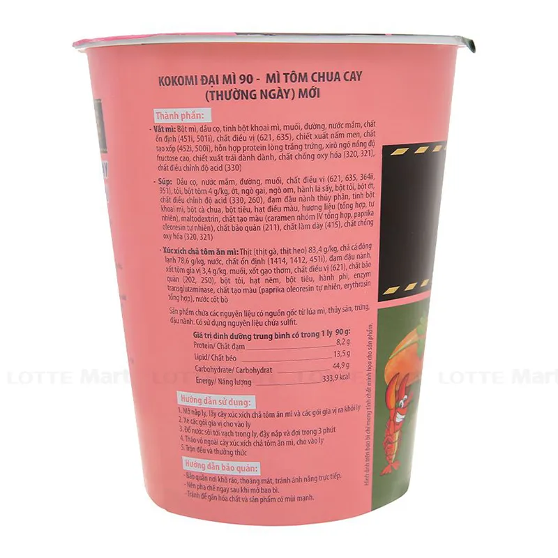 Mì Kokomi Đại vị tôm chua cay (có cây chả tôm) ly 90g là lựa chọn hàng đầu khi không có nhiều thời gian dành cho việc nấu nướng. Chỉ cần vài phút cho khâu chuẩn bị và chế biến là đã có món ăn nhiều dinh dưỡng, dùng cho bữa ăn trong ngày.