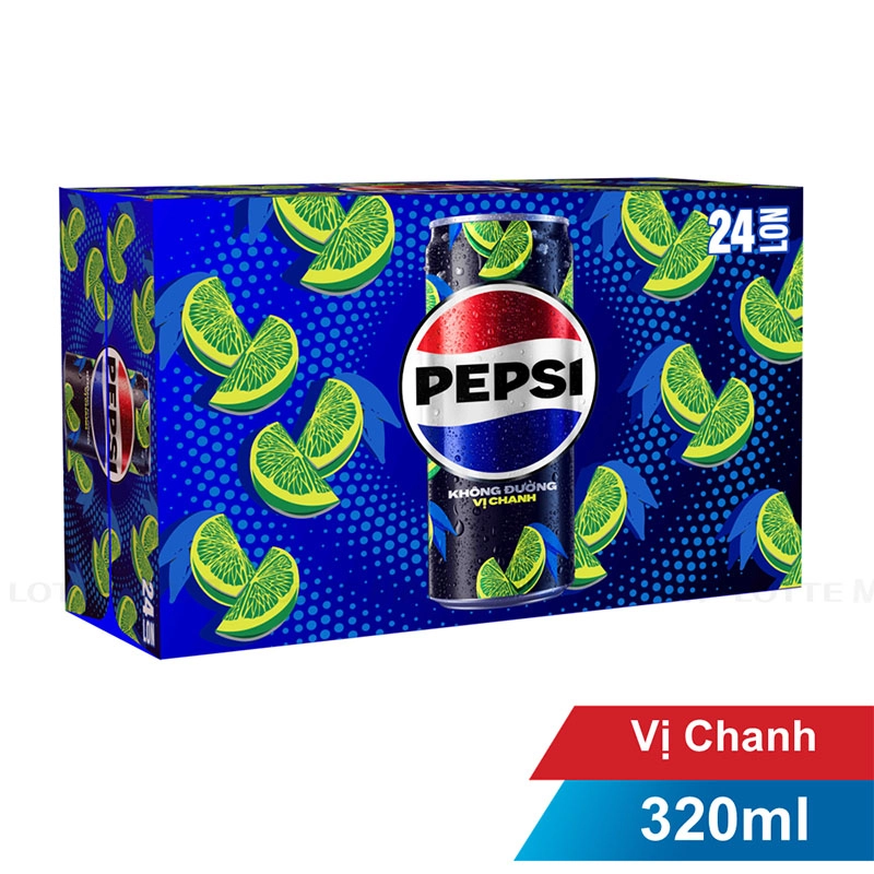 Thùng 24 Lon Nước Ngọt Pepsi Vị Chanh Không Calo 320ml