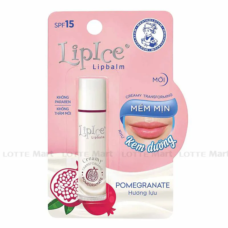 - Son Dưỡng LipIce Hương Lựu 4.3G được bổ sung chiết xuất từ quả bơ và hạt ca cao giúp dưỡng ẩm tối đa, lưu giữ độ ẩm dài lâu, chống khô, nẻ môi đồng thời bảo vệ môi khỏi tác động của ánh nắng mặt trời, mang đến cho bạn làn môi mềm tươi tắn, tự nhiên.