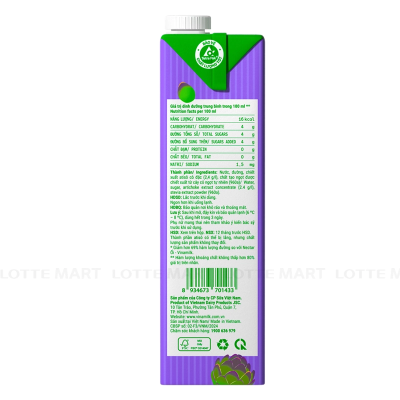Trà Atiso Không Đường Vinamilk Hộp 1L