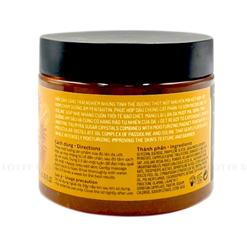 - Công thức được phối trộn tỉ lệ hạt đường hoàn hảo, kết hợp 3 kích thước hạt đường khác nhau và hạt óc chó xay nhuyễn giúp thích ứng với nhiều bề mặt và kết cấu của từng vùng da cơ thể, tối ưu khả năng lấy đi tế bào chết nhưng lại rất êm da và không gây đau rát.