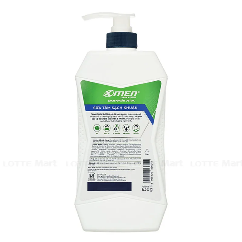 - Sữa tắm detox X-Men Clean & Fresh sạch khuẩn trà xanh 630g, phù hợp cho hầu hết các đối tượng khách hàng là nam giới ở nhiều độ tuổi khác nhau. Đặc biệt yêu thích sản phẩm detox cho làn da, bảo vệ da khỏi tác nhân gây hại cũng như có hương thơm nam tính quyến rũ.