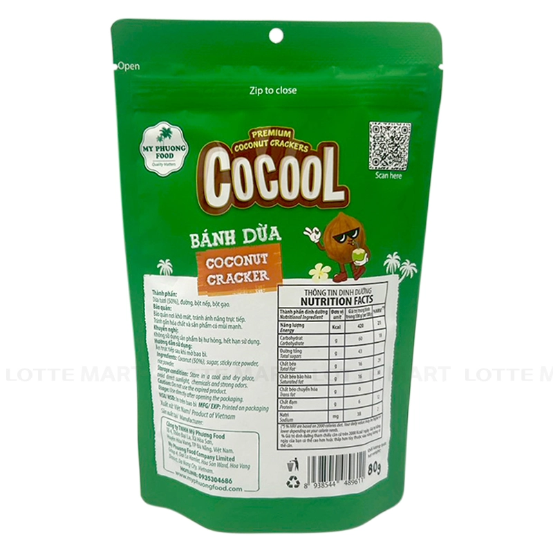 - Được chế biến hoàn toàn từ thành phần tự nhiên, Bánh Dừa Nướng Cocool không chứa chất bảo quản, phẩm màu, hay chất béo chuyển hóa, đảm bảo an toàn cho sức khỏe người tiêu dùng. Sản phẩm thuần thực vật và gluten free, đồng thời chứa hàm lượng chất xơ và khoáng chất cao, mang lại nhiều lợi ích cho cơ thể.