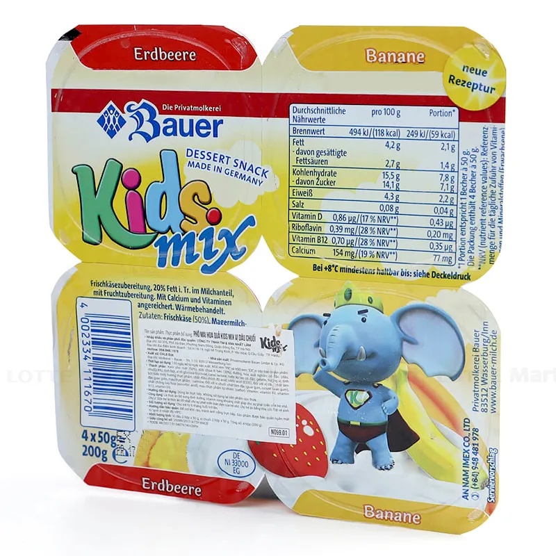 - Với hương vị thơm ngon từ phô mai, sữa chua ít béo kết hợp cùng hương vị trái cây sẽ kích thích vị giác của bé trong mỗi bữa ăn. Phô mai hoa quả Kids Mix từ Đức đảm bảo vệ sinh an toàn thực phẩm sẽ là sự lựa chọn chất lượng mẹ dành cho bé yêu.