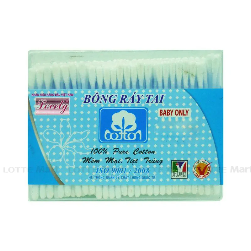 Bông Ráy Tai Hộp Vuông Nhỏ Lovely với đầu tăm bông được tiệt trùng hoàn hảo giúp mẹ an tâm khi vệ sinh tai cho bé. Thành phần: Cotton 100% và nhựa PP.