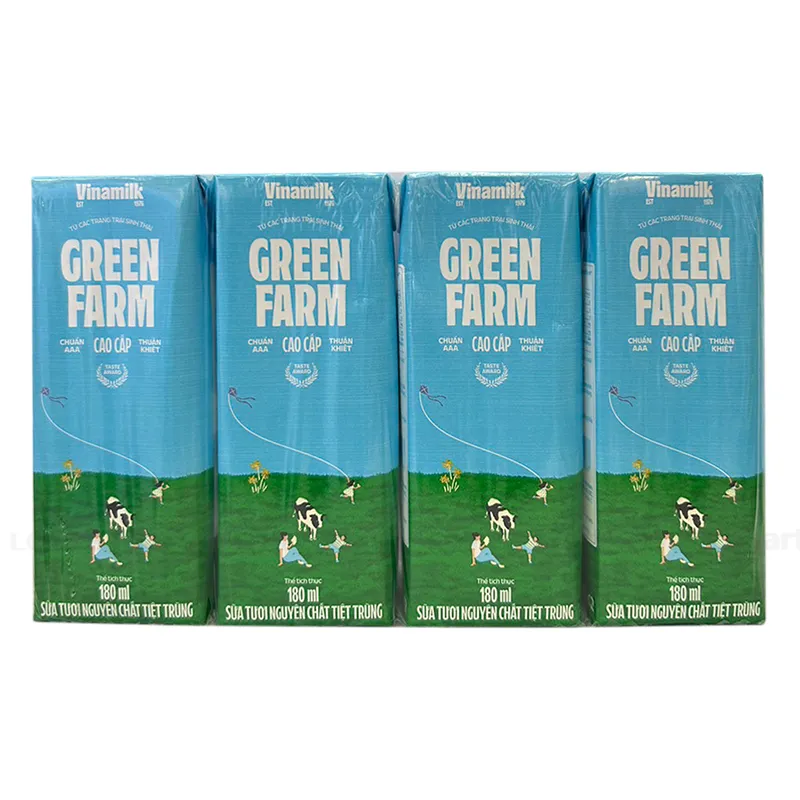 Sữa Tươi Tiệt Trùng Vinamilk Green Farm Không Đường Lốc 4 Hộp 180ml