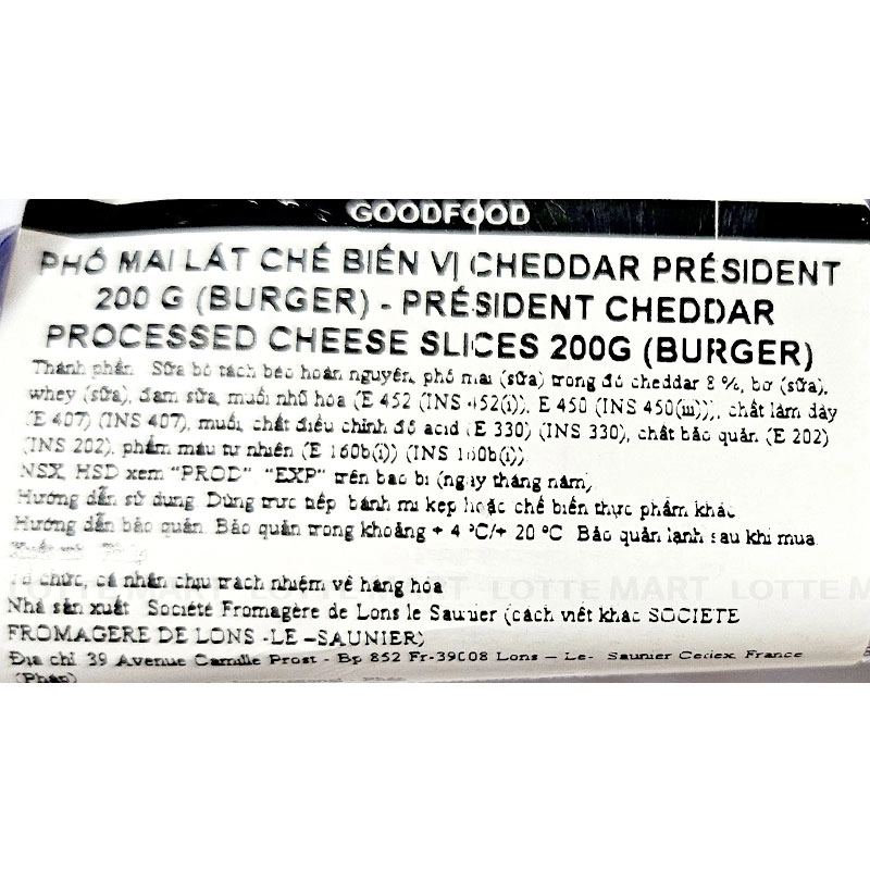 Phô Mai Lát Chế Biến Vị Cheddar President 200G