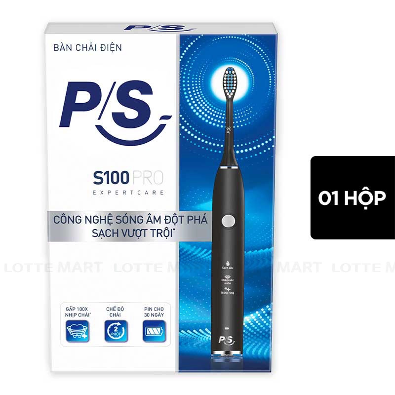 - Bàn Chải Điện P/S S100 PRO Expert Care Công Nghệ Sóng Âm Đột Phá Sạch Vượt Trội Màu Đen sử dụng công nghệ sóng âm Sonic giúp làm sạch mảng bám tới 10 lần so với bàn chải thông thường.
