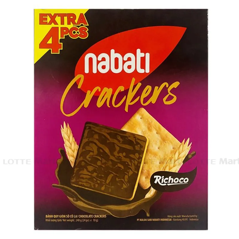 Lại một siêu phẩm nữa đến từ nhà Nabati. Crackers giòn rụm, được phủ lên mình một lớp socola đậm đà nguyên chất, vừa đăng đắng, vừa đủ ngọt, vừa đủ béo ăn mãi không ngán.