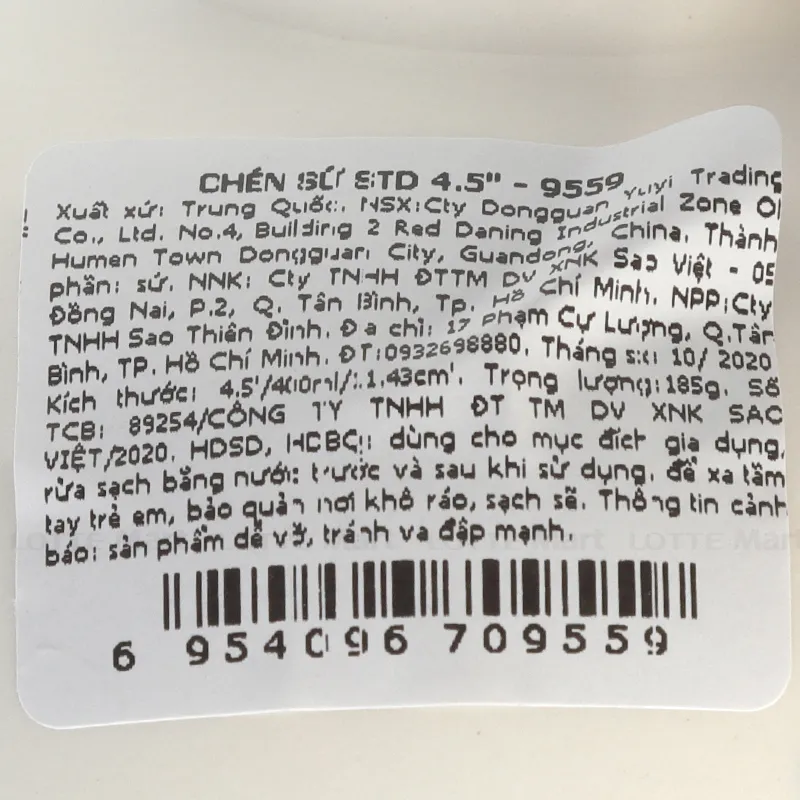 Chén Sứ Hoa Văn STD 4.5 Inch 9559 (Giao Mẫu Ngẫu Nhiên)