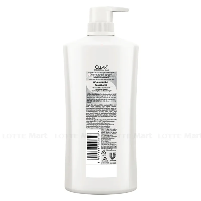 Dầu Gội Clear Hoa Anh Đào Băng Lạnh Thơm Mát được tạo ra từ sự kết hợp giữa hương hoa anh đào Nhật Bản thơm mát và bạc hà mát lạnh, bùng nổ cảm giác the mát cùng hương thơm khó cưỡng có khả năng lưu hương suốt 24 giờ. Công thức 3X sức mạnh đánh bay gàu, ngứa, và vi khuẩn giúp ngăn gàu, cấp ẩm, trả lại da đầu khỏe mạnh, bóng mượt cho bạn.