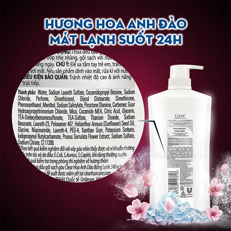 Dầu Gội Clear Hoa Anh Đào Băng Lạnh Thơm Mát Chai 630g