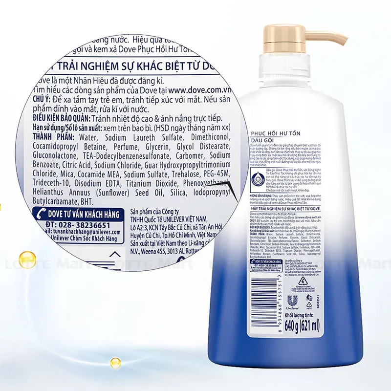 Dầu Gội Dove Phục Hồi Tóc Hư Tổn 640g