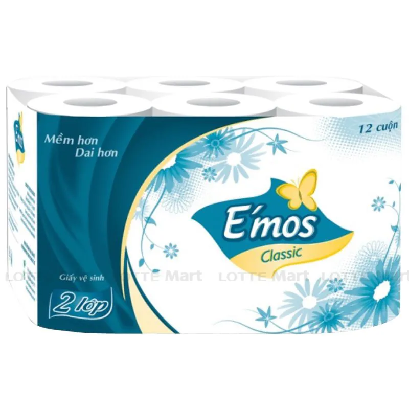 Giấy vệ sinh E'mos được sản xuất với dây chuyền sản xuất khép kín và hiện đại đạt tiêu chuẩn an toàn tại Việt Nam. Bao bì đẹp, an toàn cho da, dùng vệ sinh hàng ngày.