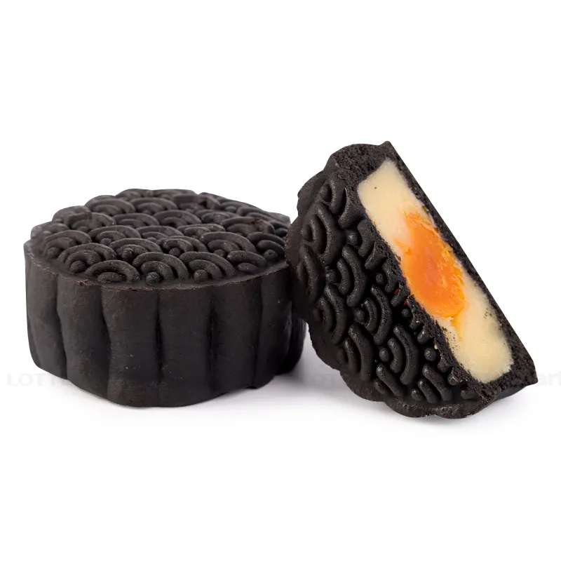 - 1 Bánh nhân than tre và hạt sen: với phần vỏ đen huyền bí kết hợp hạt sen bùi bùi mang hương vị thơm ngon, lạ miệng cùng trứng muối to tròn, ngậy béo.