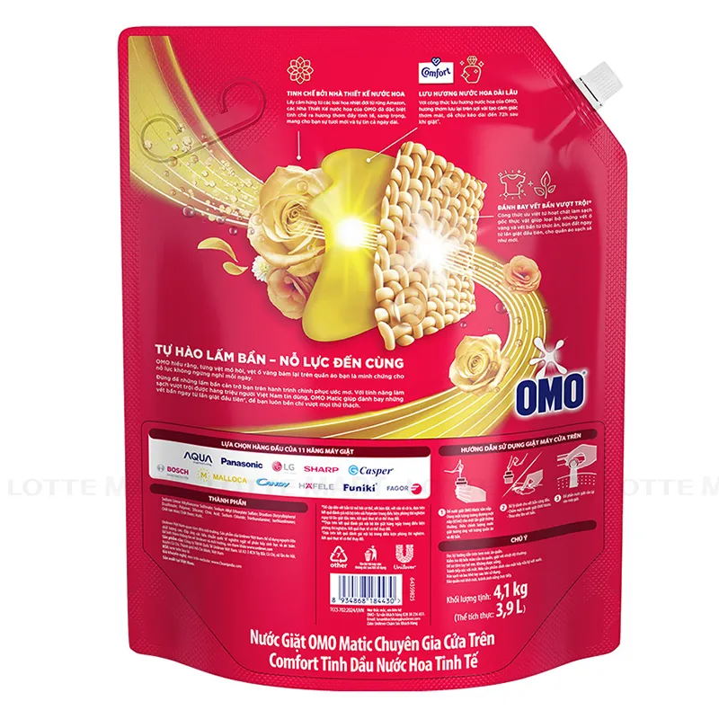 Nước Giặt Cửa Trên Omo Matic Comfort Tinh Dầu Nước Hoa Tinh Tế Túi 4.1kg