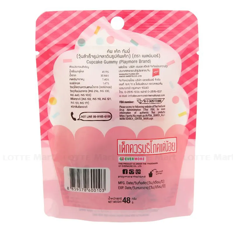 - Kẹo Dẻo Playmore Hình Bánh Cupcake Gói 48g với với hương vị thơm ngon sẽ là món ăn vặt hấp dẫn cho các bé.
