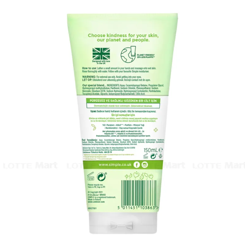 Công thức sản phẩm có độ pH cân bằng 5.5 sẽ giúp giữ lại độ ẩm tự nhiên trên da, giúp da không bị khô căng rát sau khi rửa mặt. Sản phẩm được bổ sung thành phần Panthenol (Vitamin B5) và Tocopheryl Acetate (Vitamin E) có khả năng làm dịu và giữ ẩm cho da rất tốt, thích hợp cho những làn da nhạy cảm thường xuyên bị khô căng, đỏ rát sau khi rửa mặt. Với Simple dạng Gel, bạn sẽ trải nghiệm cảm giác tươi mát cùng làn da mướt mịn sau khi sử dụng, xoa dịu hoàn toàn làn da nhạy cảm dễ kích ứng.