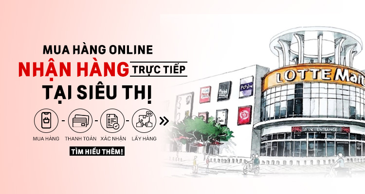 Chỉ cần đặt hàng trực tuyến trên ứng dụng hoặc website LOTTEMart.vn, chọn khung giờ nhận hàng, địa điểm nhận hàng theo danh sách LOTTE Mart cung cấp và nhân viên của LOTTE Mart sẽ thu thập các mặt hàng theo yêu cầu đặt hàng của Quý Khách. Khi đơn hàng của Quý Khách đã sẵn sàng, LOTTE Mart sẽ gửi email và thông báo trên ứng dụng hoặc website LOTTEMart.vn để cập nhật thông tin về thời gian nhận hàng trực tiếp tại siêu thị.