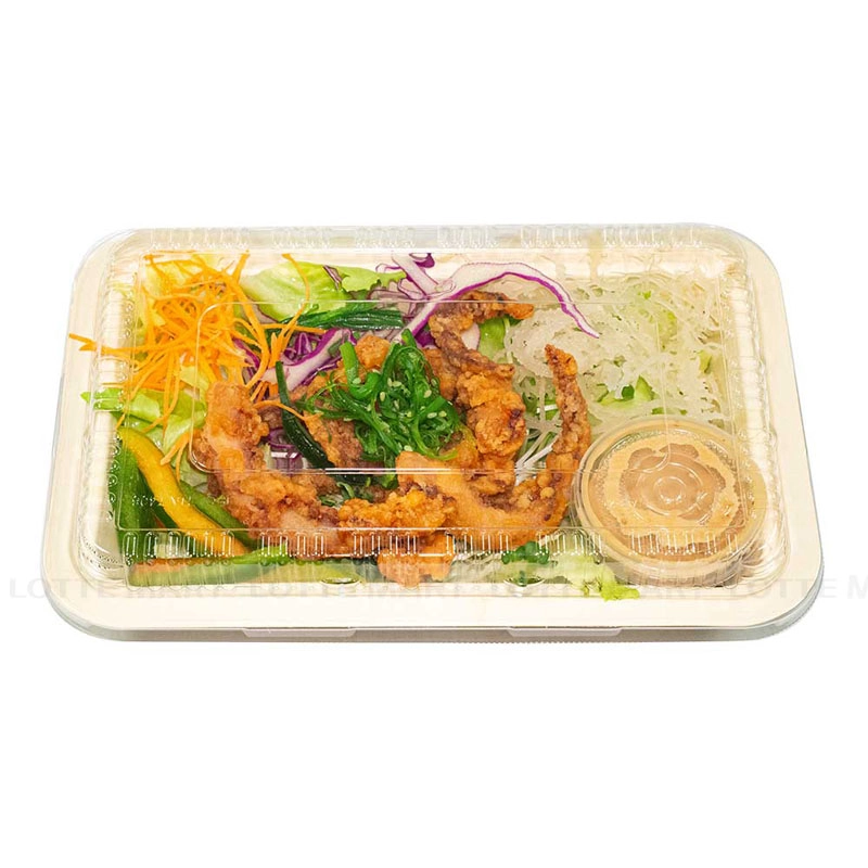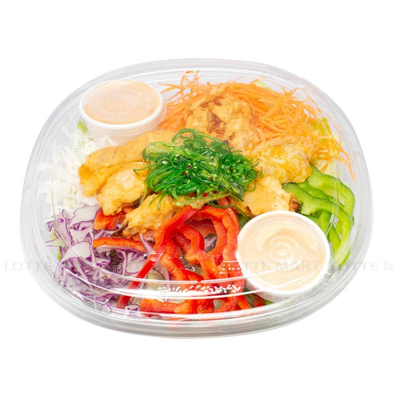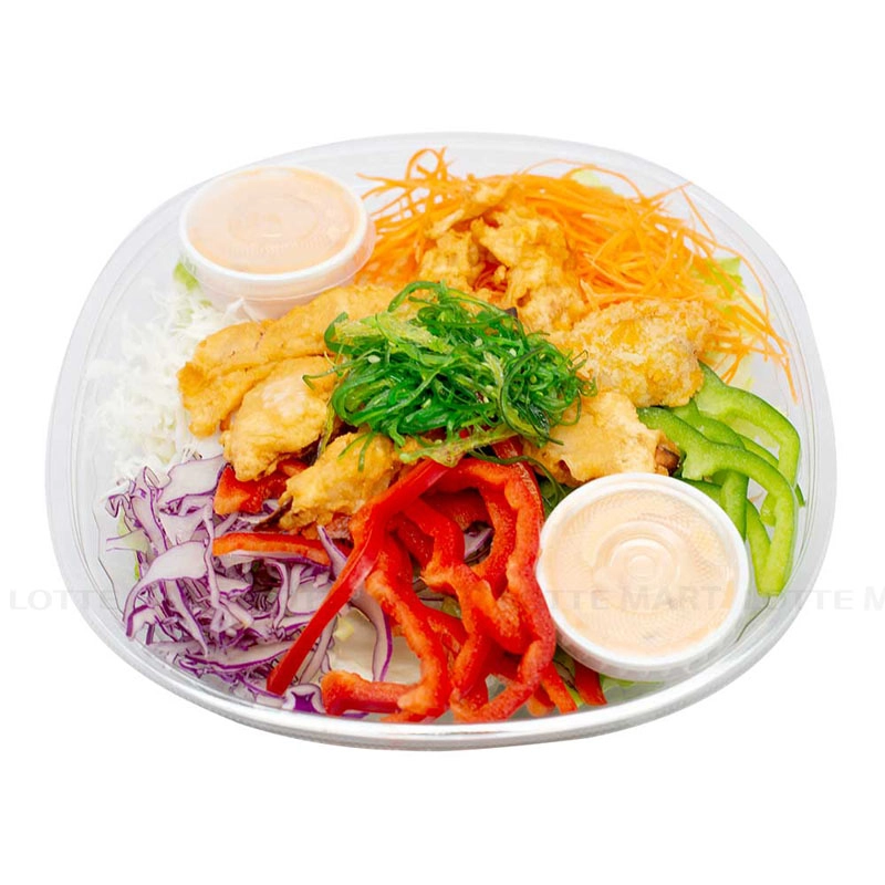 - Rong sụn, Râu mực chiên, Bắp cải tím, Rau mầm, Ớt chuông, Cà rốt, Rong biển trộn dầu mè, Nước sốt mè rang