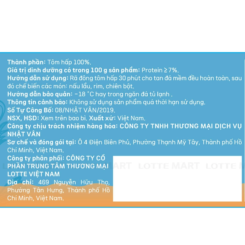 Hướng dẫn sử dụng: Rã đông tôm hấp 30 phút cho tan đá mềm đều hoàn toàn, sau đó chế biến tùy thích.