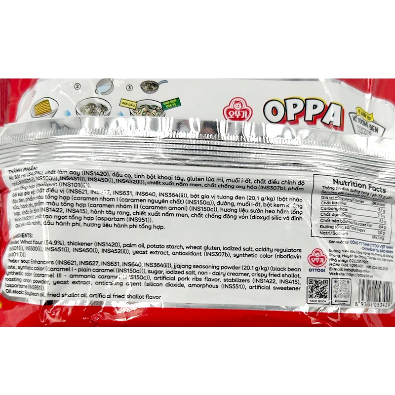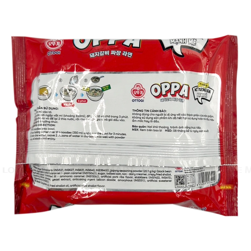 • Sản phẩm này đến từ thương hiệu Ottogi Hàn Quốc, đảm bảo chất lượng và an toàn cho người tiêu dùng. Đóng gói tiện lợi, Oppa Mì Tương đen vị sườn heo là lựa chọn hoàn hảo cho những bữa ăn nhanh hoặc khi bạn cần một khẩu phần ăn vặt ngon và bổ dưỡng.