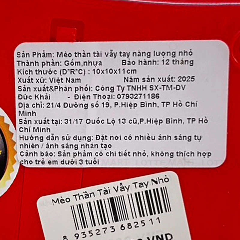 - Điểm tiện dụng của sản phẩm là cơ chế vẫy tay bằng năng lượng ánh sáng với phần đế có tấm nhận sáng, đặt sản phẩm ở nơi có ánh sáng tự nhiên hoặc ánh đèn là tay mèo sẽ tự động chuyển động vẫy, không cần cắm điện hay thay pin, vừa tiết kiệm vừa tạo hiệu ứng “có lộc” khi trưng bày.