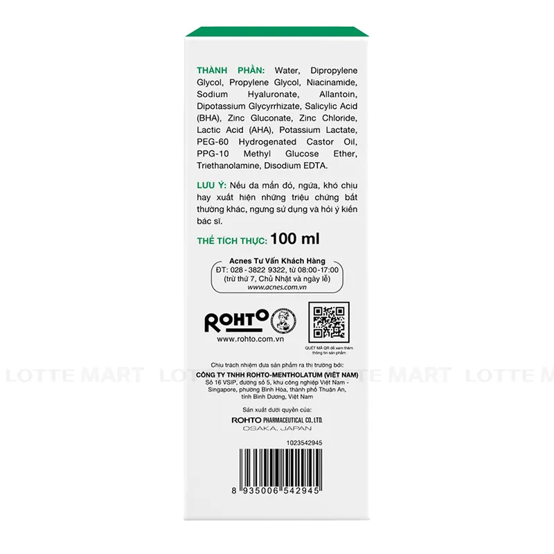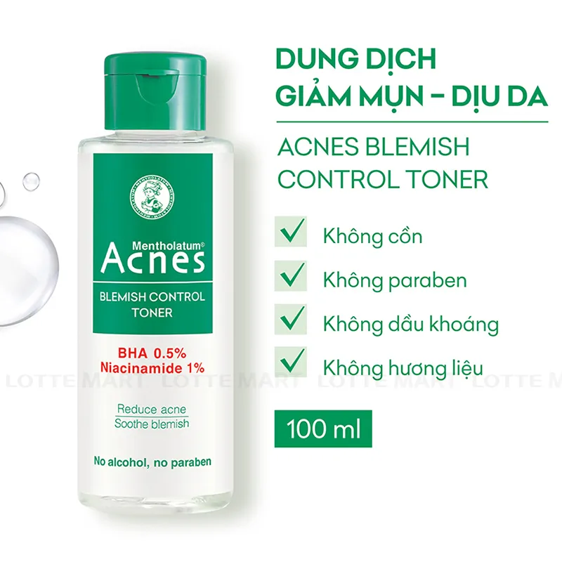 - Dung Dịch Acnes Làm Sạch Giảm Mụn Và Dịu Da Blemish Control Toner Chai 100ml là sản phẩm toner đến từ thương hiệu mỹ phẩm Acnes thuộc tập đoàn Rohto của Nhật Bản, được nghiên cứu và phát triển dành riêng cho da mụn với sự kết hợp của các hoạt chất AHA, BHA, Zinc Gluconate và Niacinamide.