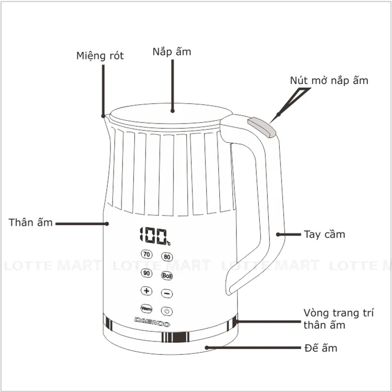 Ấm Đun Siêu Tốc Daewoo DWK-170DGT điều khiển được nhiều mức nhiệt, lòng inox 304 cao cấp an toàn với sức khỏe cùng thiết kế mới lạ và độc đáo hứa hẹn sẽ là sản phẩm ấm đun không thể thiếu trong nhà của bạn.