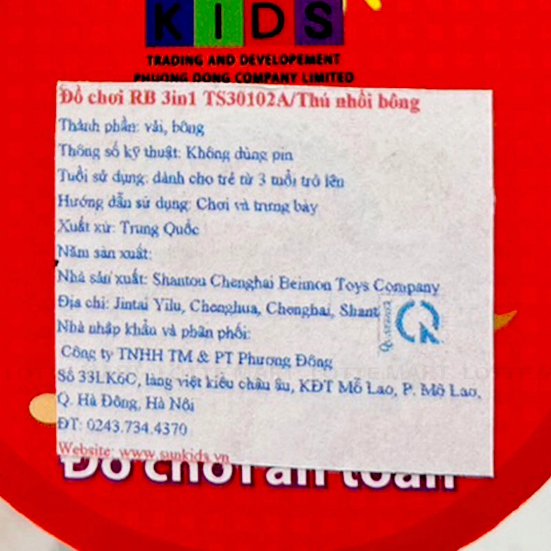 Lưu ý: Sản phẩm phù hợp với trẻ từ 3 tuổi trở lên.