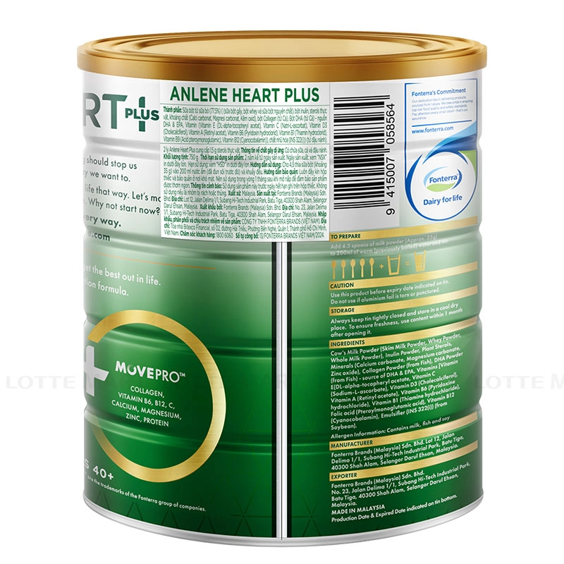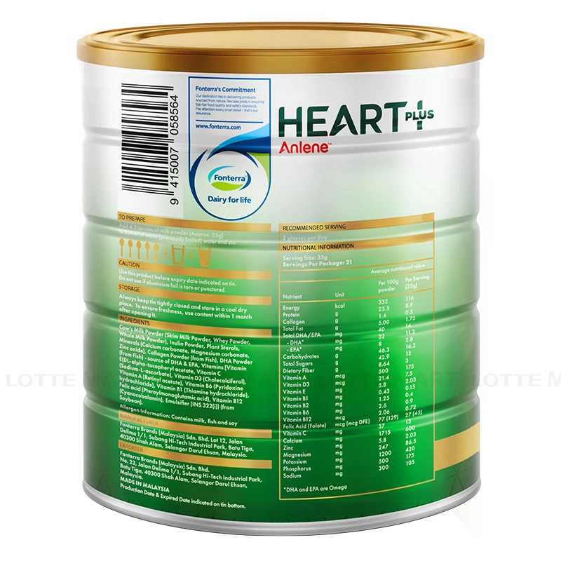 - Anlene Heart Plus là sản phẩm dinh dưỡng được thiết kế với công thức chứa nhiều dưỡng chất tốt cho sức khỏe tim mạch như sterol thực vật, Omega-3, Folate, vitamin B12 và kali. Sản phẩm dễ dàng tích hợp vào thực đơn hàng ngày, giúp chăm sóc sức khỏe một cách thuận tiện.