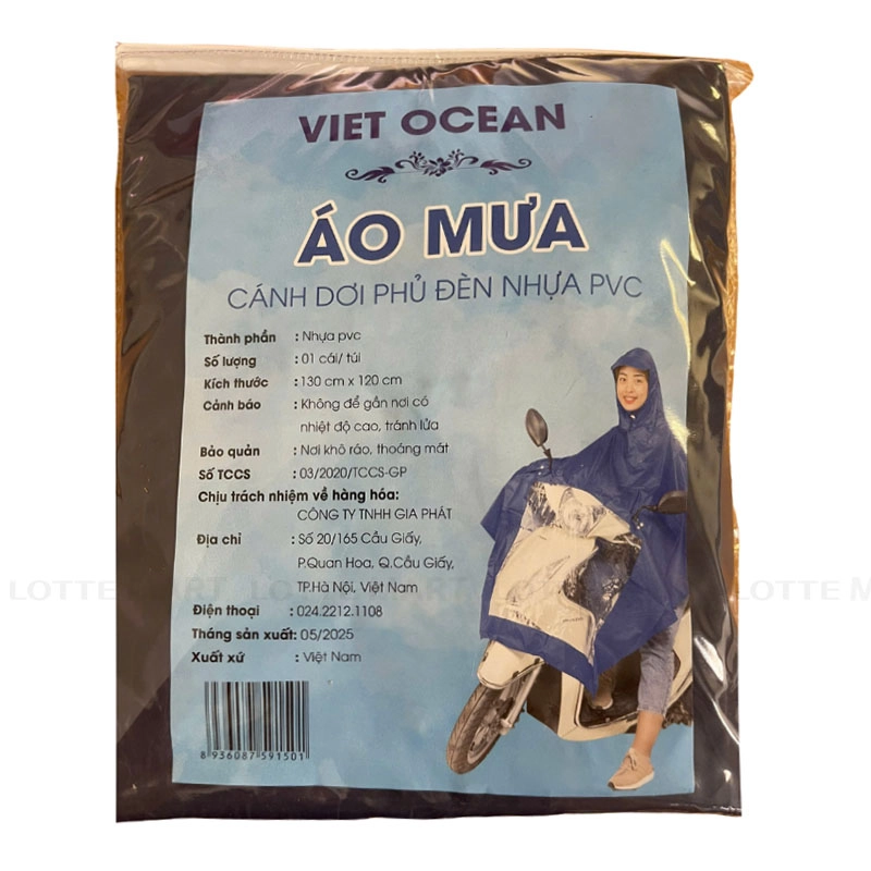 Áo Mưa Cánh Dơi Ocean Nhựa PVC là loại áo mưa chùm 2 mảnh, thiết kế thông minh giúp che phủ cơ thể và xe máy trong điều kiện mưa.