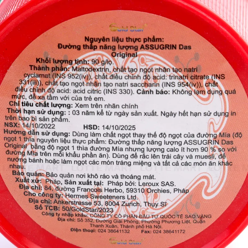 - Đường Hạt Thấp Năng Lượng Assugrin Hũ 90G là loại đường thấp năng lượng là loại đường duy nhất được đóng trong lọ thuỷ tinh, giảm tới 90% calo khi sử dụng, có chứa Maltodextrin và Sacharin được chiết xuất từ tinh bột bắp, giúp bữa ăn của bạn ngon miệng mà không ảnh hưởng đến quá trình trao đổi chất của cơ thể. Sản phẩm được làm hoàn toàn từ chất tạo ngọt không chứa năng lượng, vì vậy rất tốt cho người ăn kiêng, tiểu đường, béo phì...