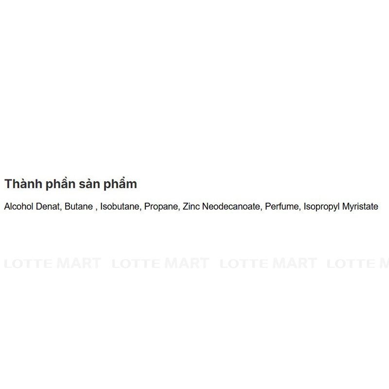 - Alcohol Denat, Butane, Isobutane, Zinc Neodecanoate, Perfume, Isopropyl Myristate.