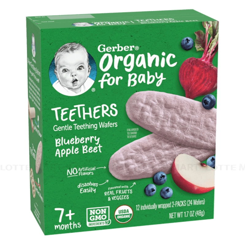 - Sản phẩm thuộc thương hiệu Gerber (Mỹ) và được làm hoàn toàn tự nhiên, không thêm muối, hương liệu hay chất bảo quản, đảm bảo an toàn vệ sinh thực phẩm cho trẻ nhỏ. Bánh ăn dặm Gerber không chỉ ngon miệng mà còn giúp bé hình thành thói quen ăn uống lành mạnh ngay từ những bước đầu tiên.
